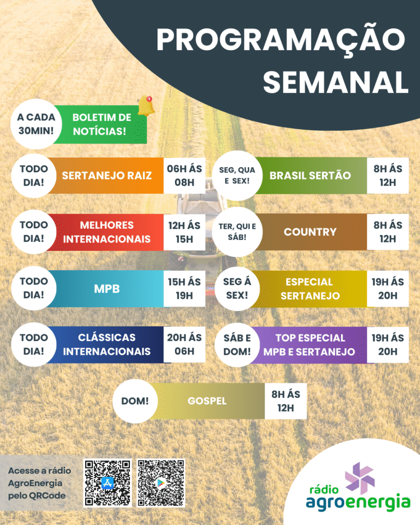 Na Rádio AgroEnergia, cada momento do seu dia tem um ritmo especial. Sintonize e curta uma programação feita pra quem ama música de verdade! 🌾🎧